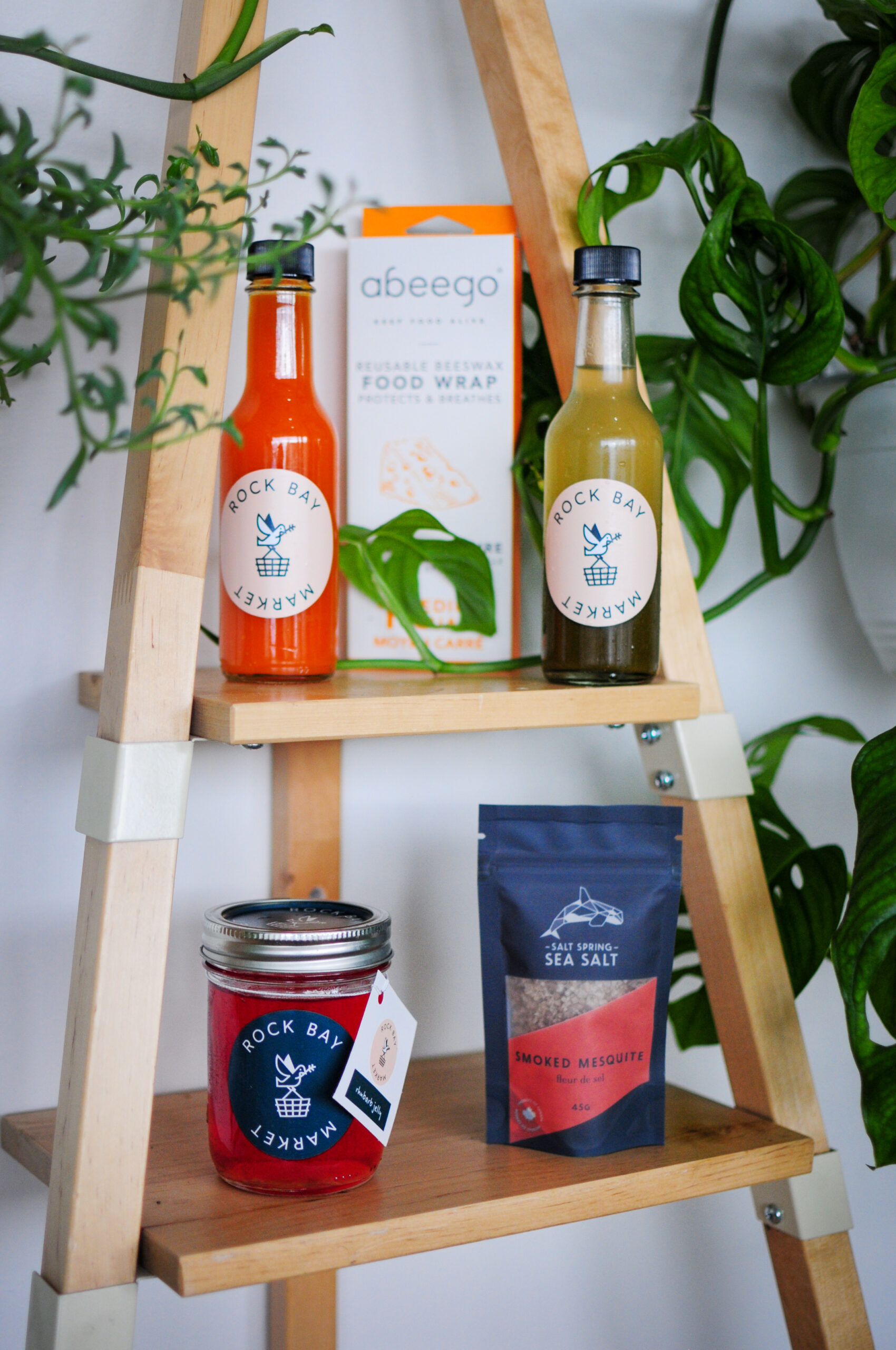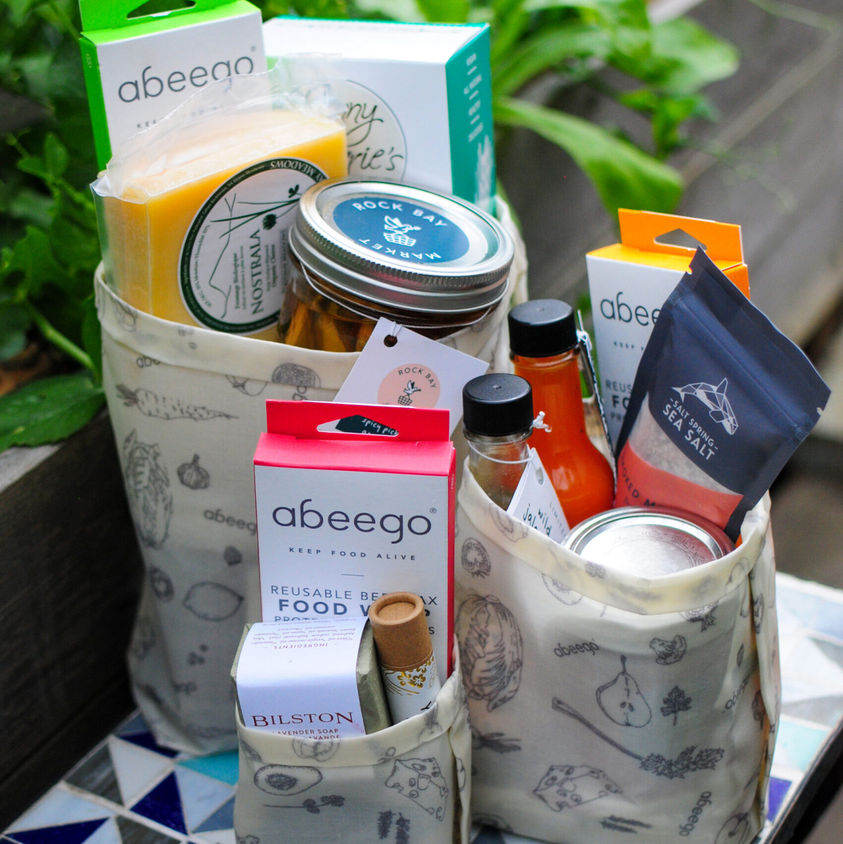 Looking for a special birthday, housewarming or host gift? Rock Bay Market, in collaboration with Abeego, are pleased to announce Gift Baskets! Give a unique and sustainable care package containing our own house made products alongside other local sourced specialty grocery or body care products, packaged in a reusable Abeego beeswax wrap!